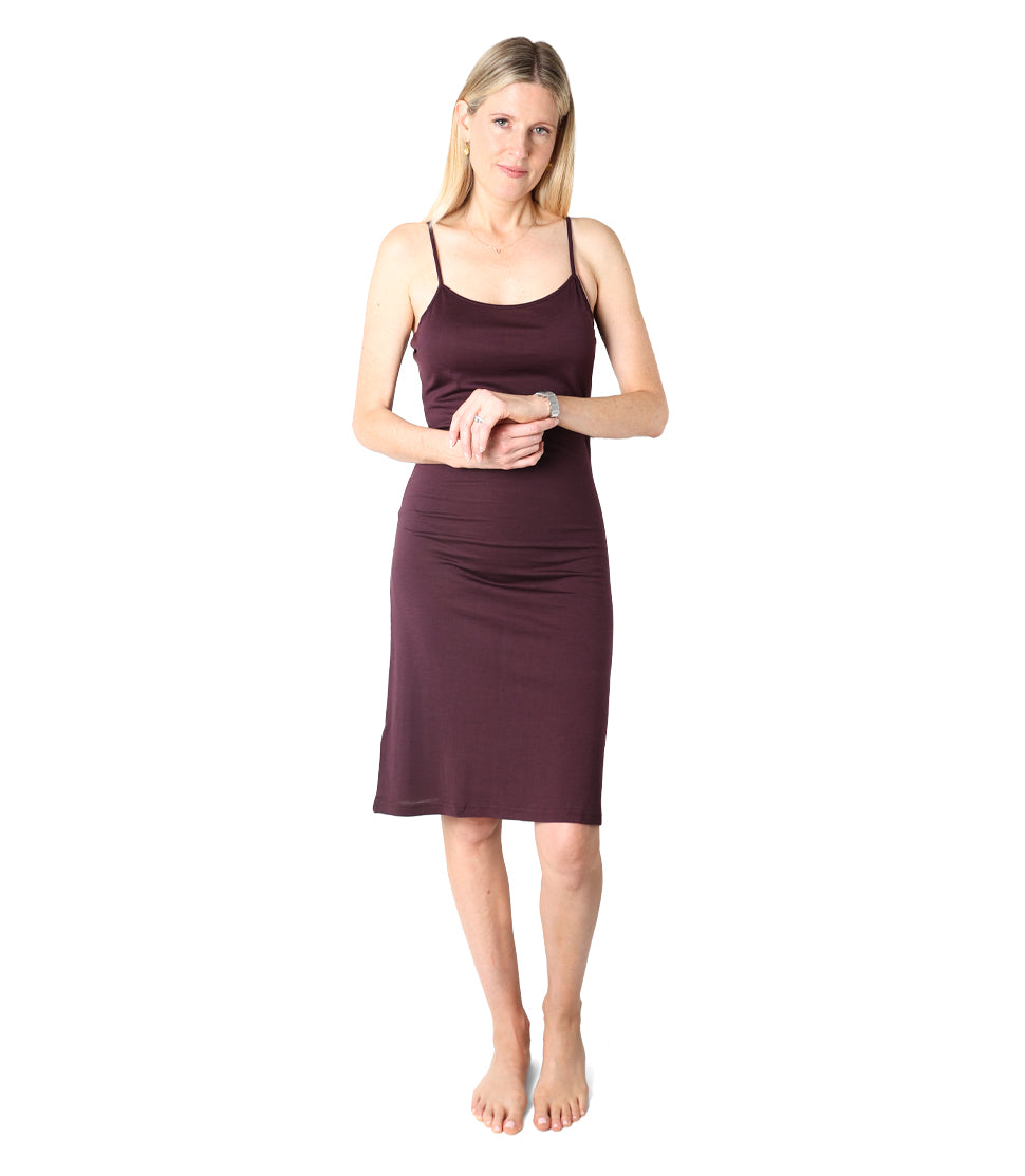 The Silkspun Slip Dress is a luxurious next-to-skin layer that doesn’t bunch, cling or overheat.  The 100% natural silk, merino and cotton blend keeps you warm providing the perfect extra layer needed on colder days, yet its natural breathability keeps you comfortable in any situation.  Featuring adjustable shoulder straps for wearing under a variety of hemlines it doubles beautifully as a nightie for a luxurious night's sleep.