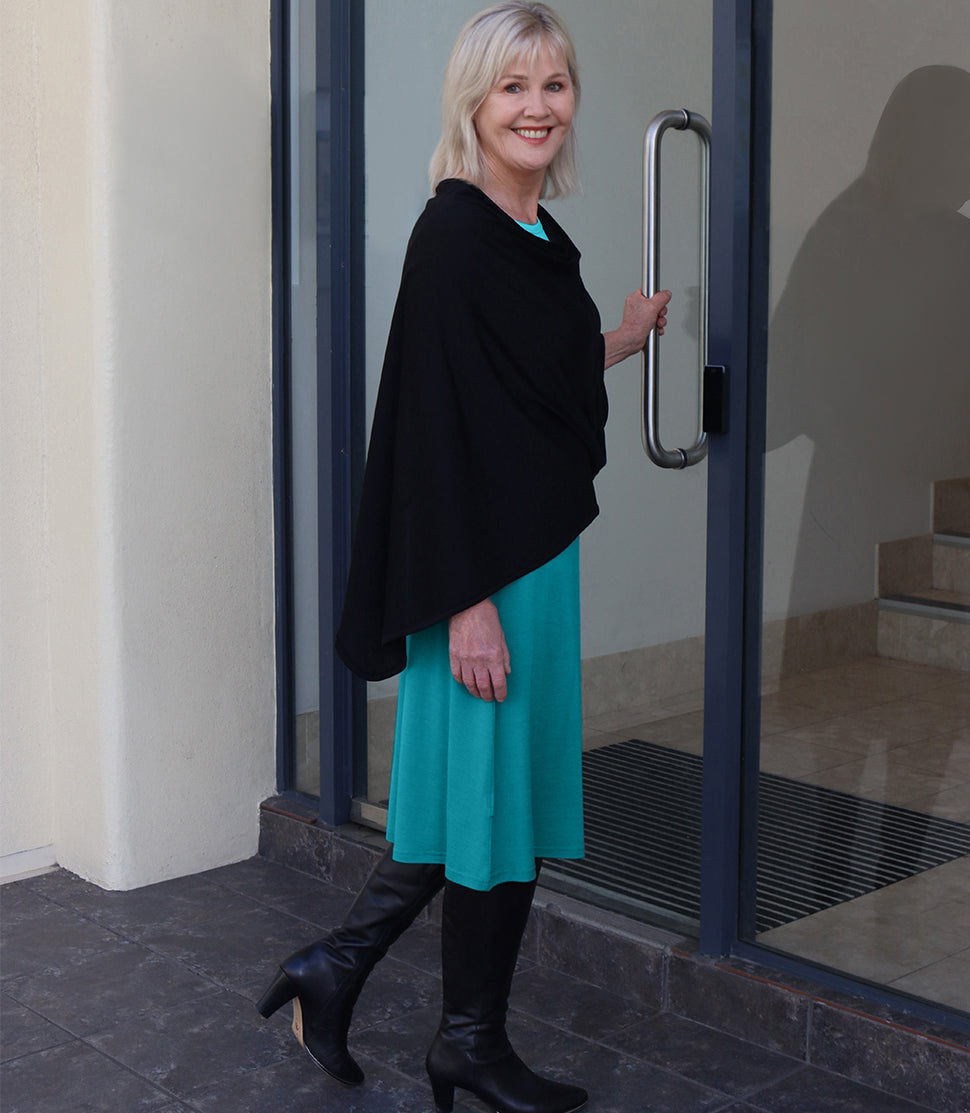 Classically elegant, timeless and graceful, our light yet warm silk, merino and cotton Poncho will suit any occasion.