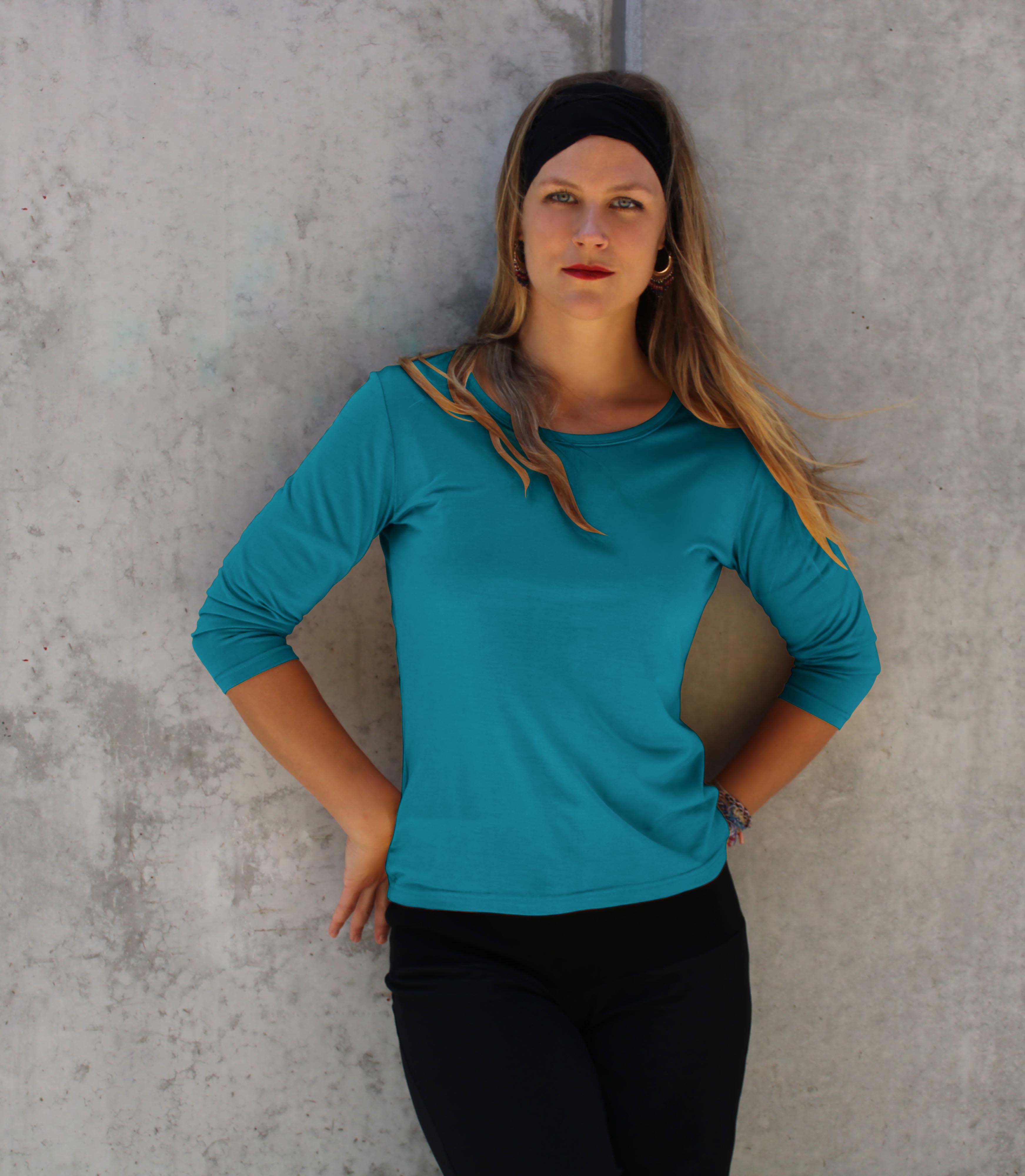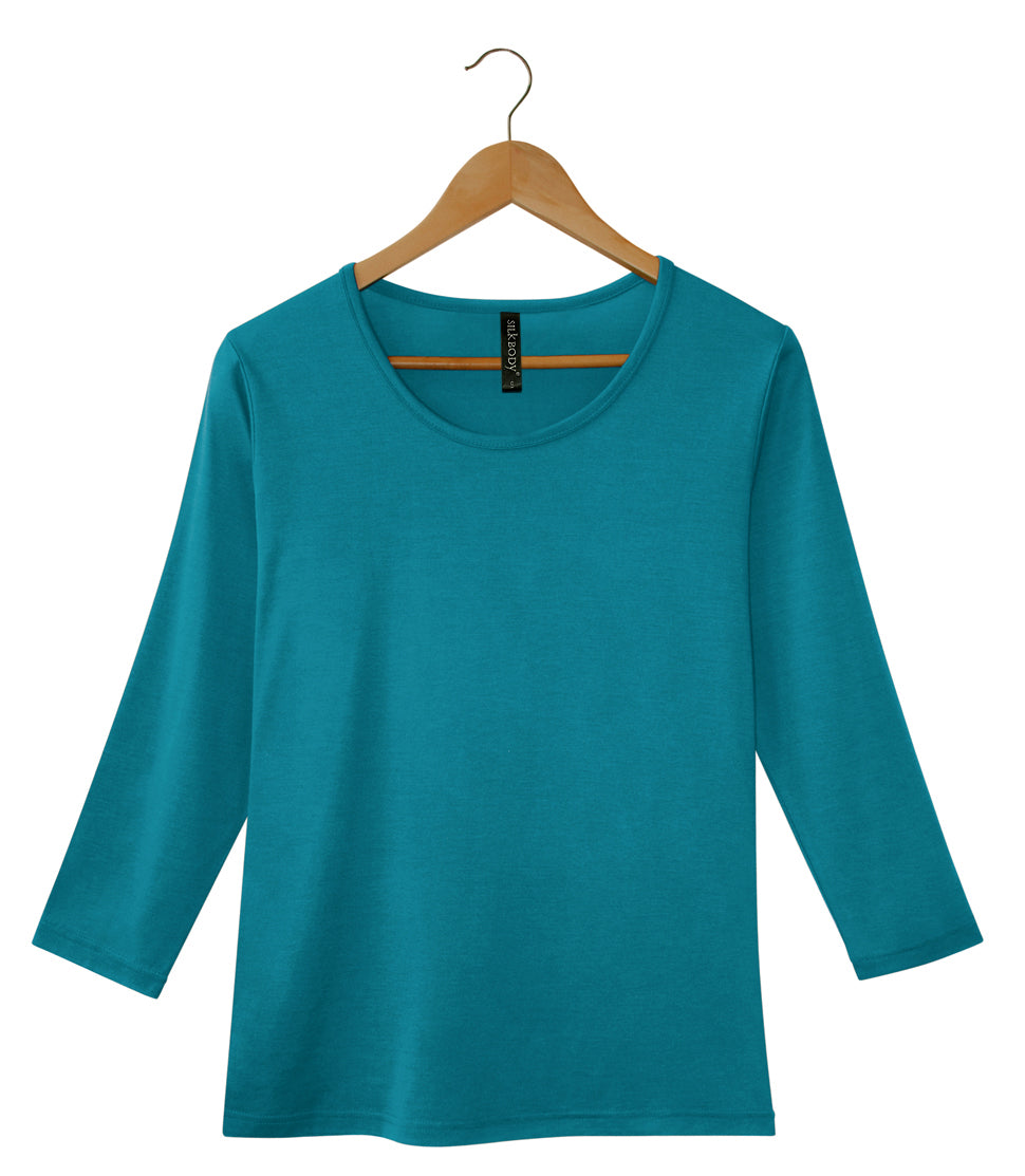 Our Silkspun 3/4 Sleeve with a scoop neckline is made from 100% natural Silkspun fabric, offering softness and breathability. Perfect for layering, this versatile top is ideal for work, travel, or active lifestyles.