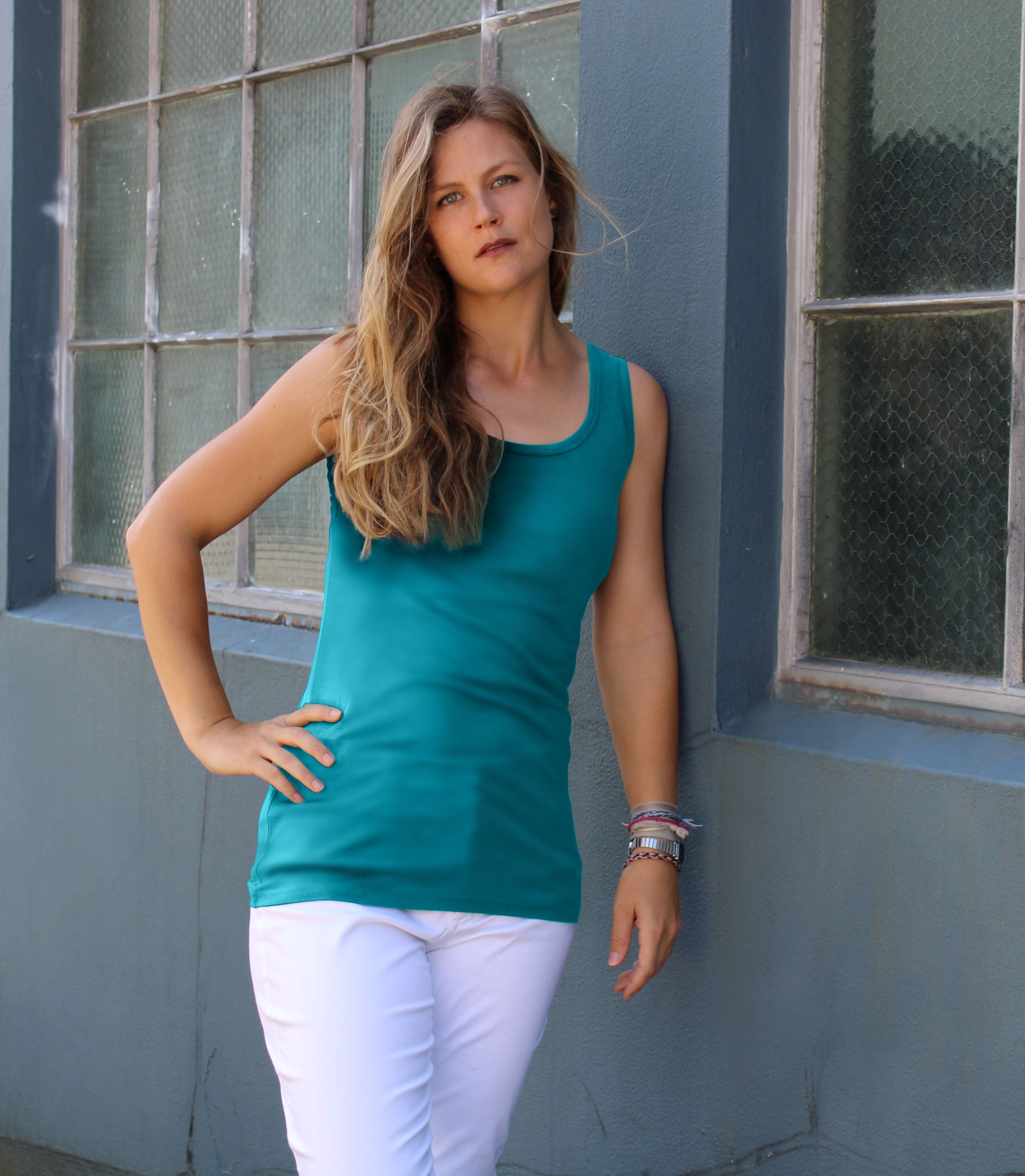 Our Longline Sleeveless is extremely versatile. A perfect layering piece, it can be worn as a longer-length singlet or as a classic sleeveless top in warmer weather. Made in our very own Silkspun fabric it is easy care and so nice to wear.